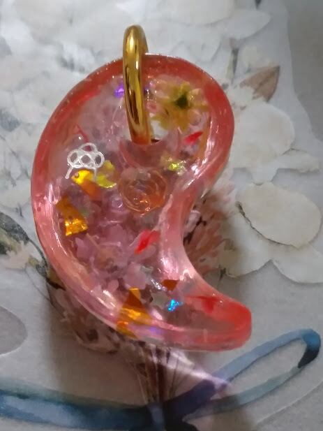 伊勢、出雲の波動水晶を入れ込み、渦巻きの金属にて一段と波動が上がる勾玉です。また、高波動のフトマニ図よりエネルギーアップしてありますので、お部屋の浄化や、ネガティブな感情の浄化、邪気などの除去にお使いいただけます。アクセサリーとして身につけられても良いでしょう。龍神のエネルギーで自分の浄化と御守りとしても活用できます。薄いピンクの色で可愛く仕上げました。大きさ4.0~4.5cm。